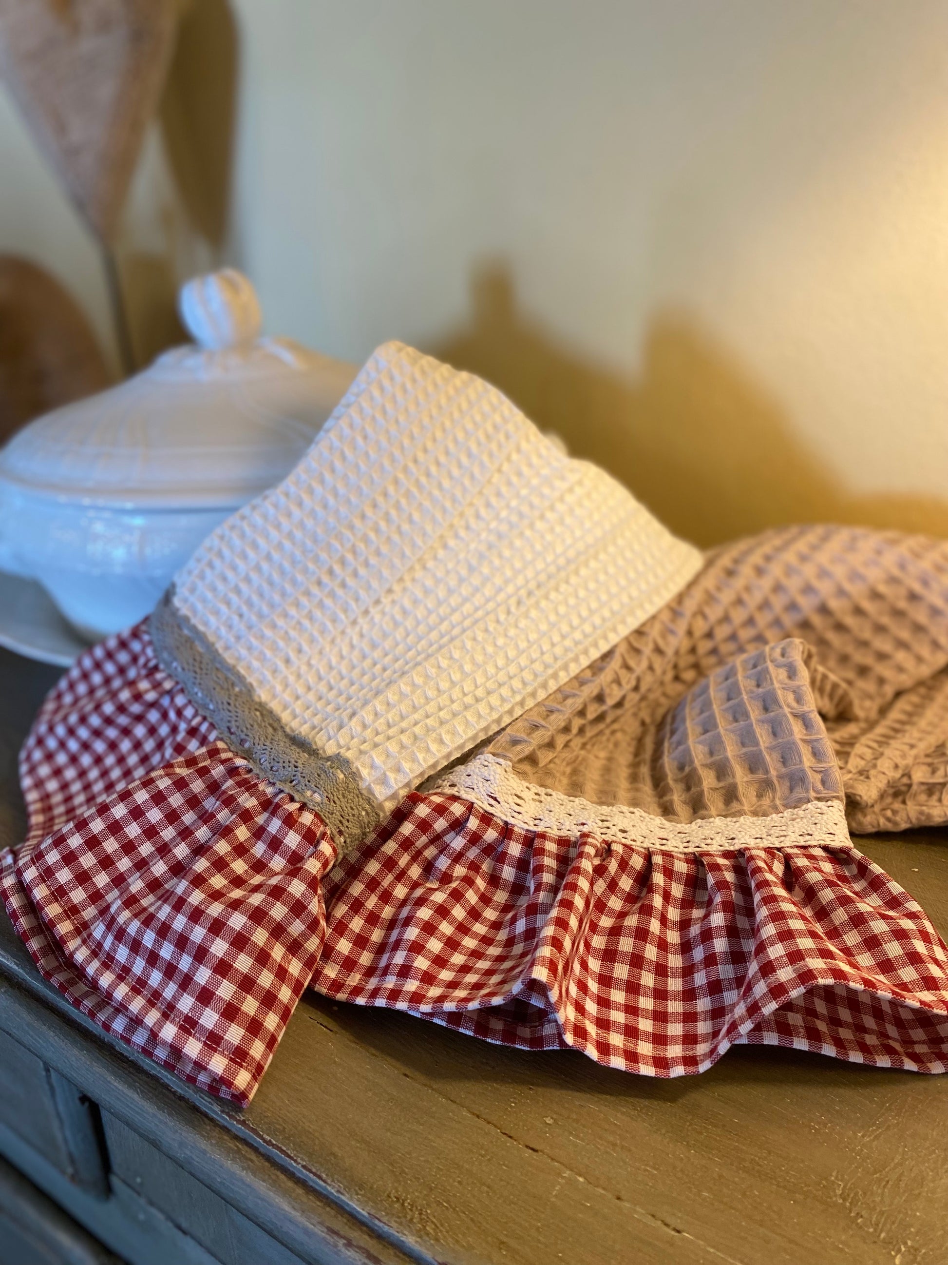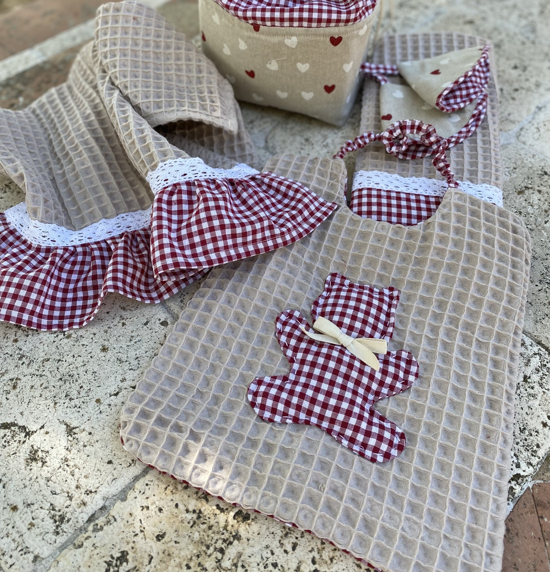 Creerete dei graziosi set da cucina da abbinare al cestino portapane con la coulisse ed alle presine.